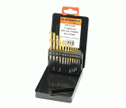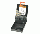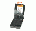 El estuche metálico de brocas HSS Ø1,5-6,5x0,5 + 3,2 y 4,8 es un conjunto de 19 brocas de alta calidad, fabricadas en acero rápido HSSCo 5% calidad M35.