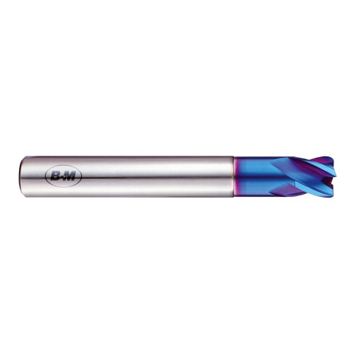 Fabricada con metal duro micro grano y un recubrimiento especial azul, esta fresa cuenta con 4 dientes y un corte al centro para un fresado preciso.