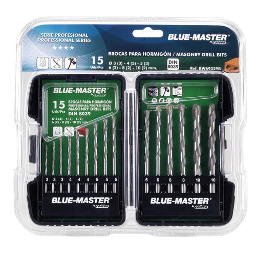 Este set de 15 piezas viene en un práctico blister que facilita su almacenamiento y transporte.