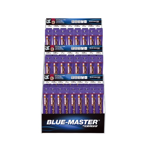 Fabricado con materiales de alta calidad, este expositor cuenta con una amplia gama de brocas de diferentes tamaños y materiales, incluyendo HSS y TIALSIN.