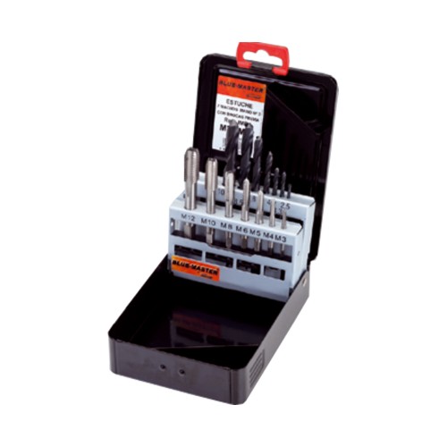 Incluye brocas de pretaladro dimensionadas para cada medida, garantizando el diámetro correcto antes del roscado.