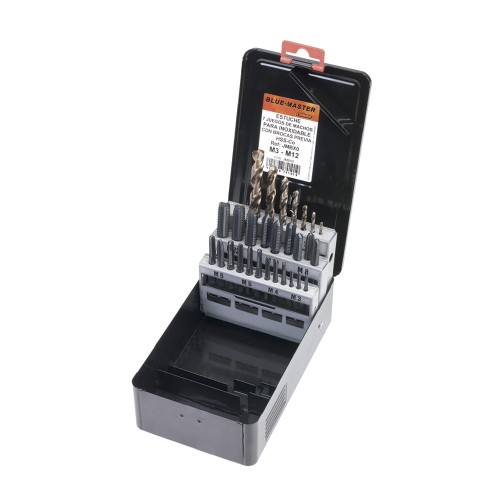 - Incluye machos de roscar de diferentes tamaños, desde M3 hasta M12.