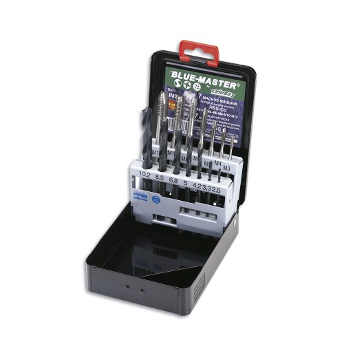 - Incluye un total de 7 machos y 7 brocas HSS en una práctica caja de almacenamiento.