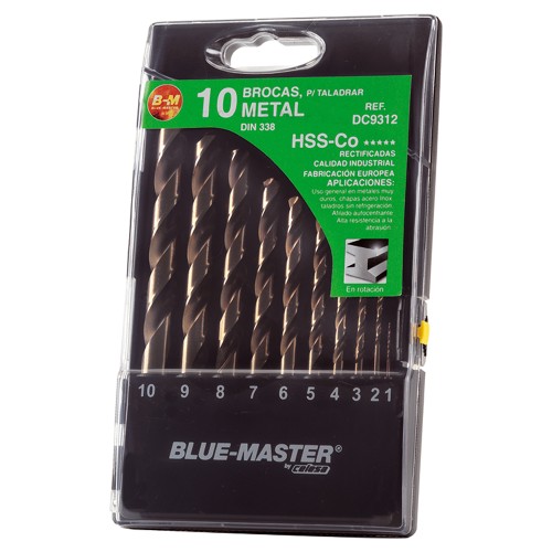 Con un total de 10 brocas, fabricadas en acero rápido HSSCo 5% calidad M35, este estuche ofrece una amplia gama de tamaños, desde Ø1mm hasta Ø10mm.