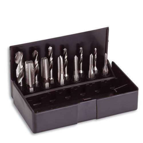 - Incluye una amplia gama de machos y brocas previas para cubrir desde M3 hasta M10.