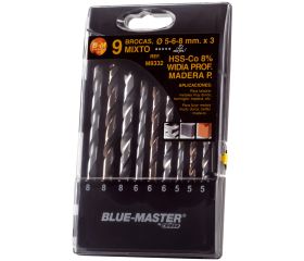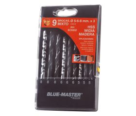 M9332 | ESTUCHE BLUE-MASTER COMBINADO BROCA HSS-CO+WIDIA+MADERA Ø 5-6-8x3