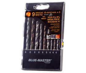 M9331 | ESTUCHE BLUE-MASTER COMBINADO BROCA HSS-CO+WIDIA+MADERA Ø 4-6-8x3