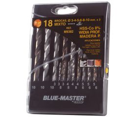 P9382 | ESTUCHE BLUE-MASTER COMBINADO BROCA HSS-CO+WIDIA+MADERA Ø3-4-5-6-8-10x3