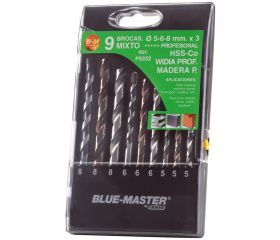 P9332 | ESTUCHE BLUE-MASTER COMBINADO BROCA HSS-CO+WIDIA+MADERA Ø 5-6-8x3